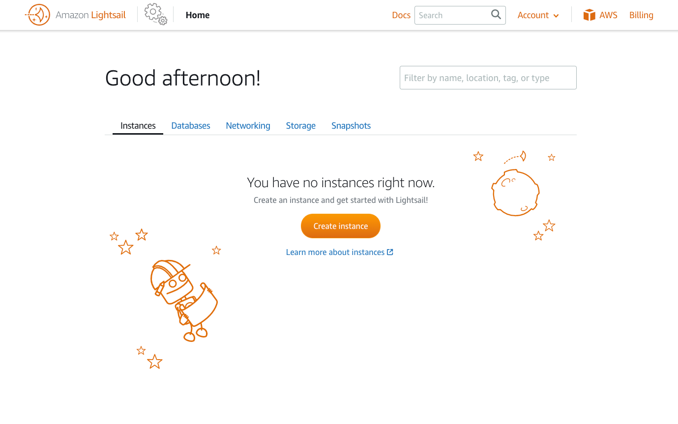Point and click Instances, databases, IP and DNS, storage and backups
